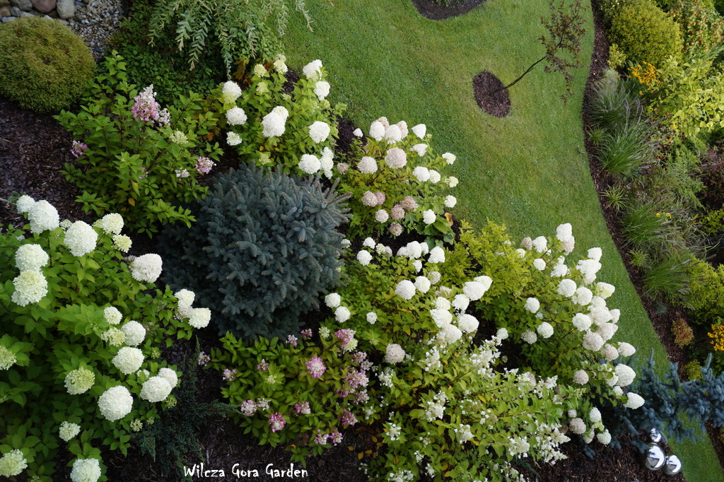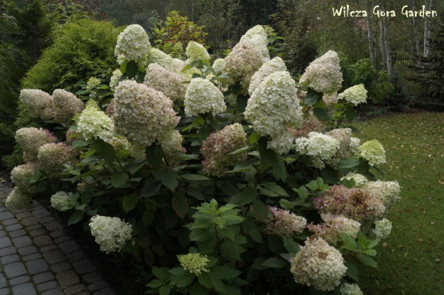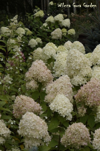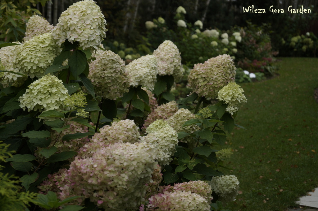 Nie ma dziś słońca, ale z wszystkich zakątków wydobywa się taka pozytywna jasność… biel hortensji sprawia, że ogród zdaje się być bardzo energetyczny. Niektóre z nich zaczęły już różowieć.