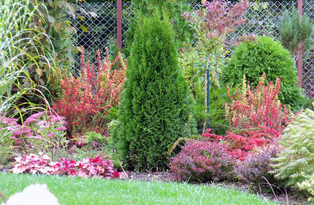 Otworzyłam okno. Postanowiłam sfotografować tylko to, co w zasięgu obiektywu. Lekko przechyliłam się do przodu i cyk, cyk… na lewo, na prawo i takie mamy efekty. Dziwne dziś światło. Zdjęcia jak kolorowane, a wcale nie są. Lubię ten zakątek naszego ogrodu. To jeden z najtrudniejszych. Ze względu na lokalizację i glebę. Twarda glina, pod nią iły niebieskawe. Usytuowany w najwyższym narożniku naszej działki. Z całorocznym deficytem wody.