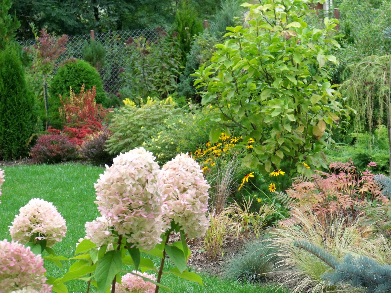 Efekty wieloletnich zmian i doboru roślin zadowalają mnie. Wszystko się ładnie rozrasta i nawet zaczyna tworzyć kompozycję 🙂