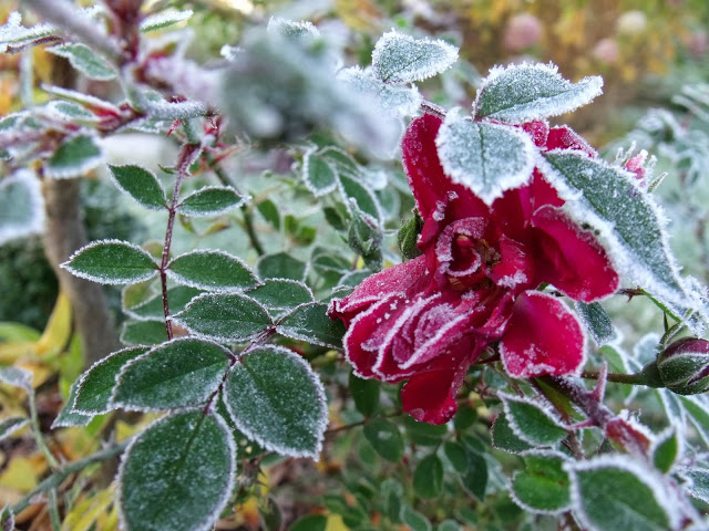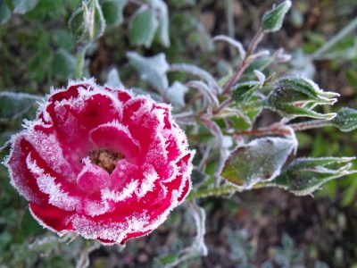 „Purple Rain” (Kordes 2009) – od 2 lat u nas. Wygląda na to, że miała jeszcze w planie udowodnić, że warta była uwagi, kiedy zaplanowałam z niej obwódkę naszej różanki. W czerwcu kwitła bardzo, bardzo obficie. Tochę długo zbierała się do „powtórki z rozrywki ” a mrozik, jak to mrozik. Miał swoje plany…