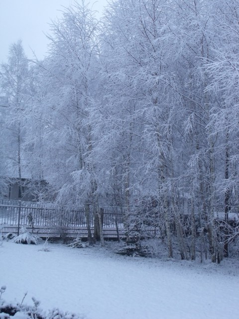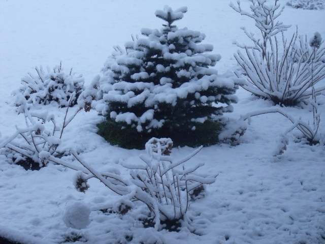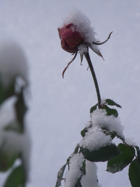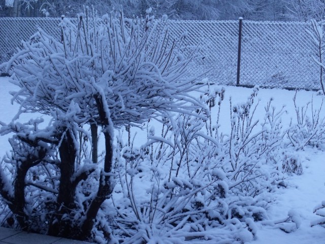 „Robusta” kwitnie do samych mrozów i zwykle właśnie tak wita zimę. Ze śniegiem na głowie 🙂