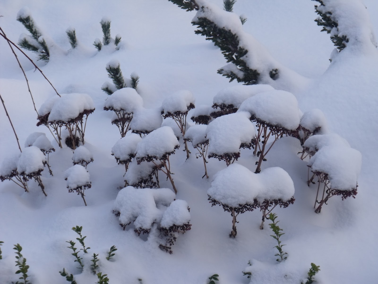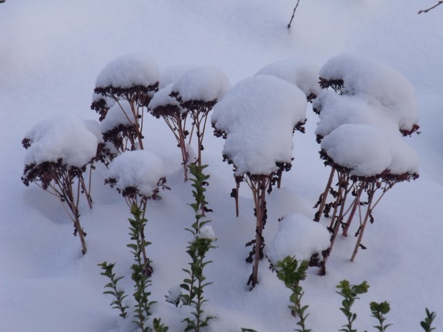 Jak tu nie uwielbiać rozchodników. W każdym momencie roku są wspaniałą ozdobą. Tu w śnieżnych czapeczkach: