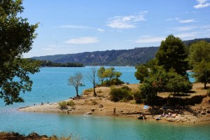 Jezioro to, ma długość 10 km i powstało dzięki zaporze wodnej zbudowanej na południe od Moustiers-Sainte-Marie (cudowne miasteczko – opis w oddzielnym poście).