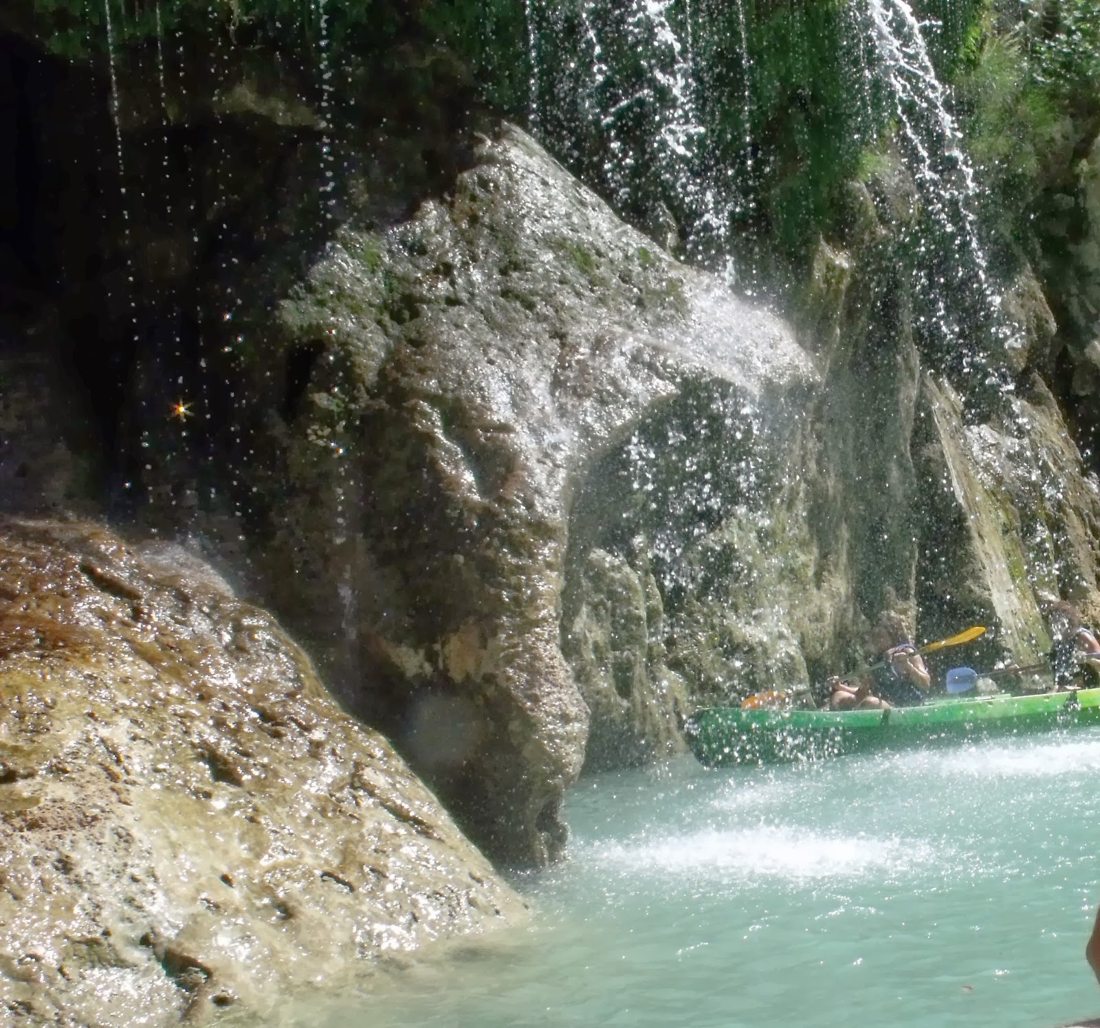 Co kawałek ze skał spływają mniejsze i większe wodospady, pod które można wpłynąć, aby się troszkę orzeźwić i schłodzić. Temperatury bywają tu bardzo wysokie wiec to cudowne orzeźwienie: