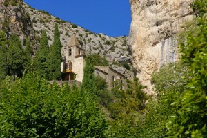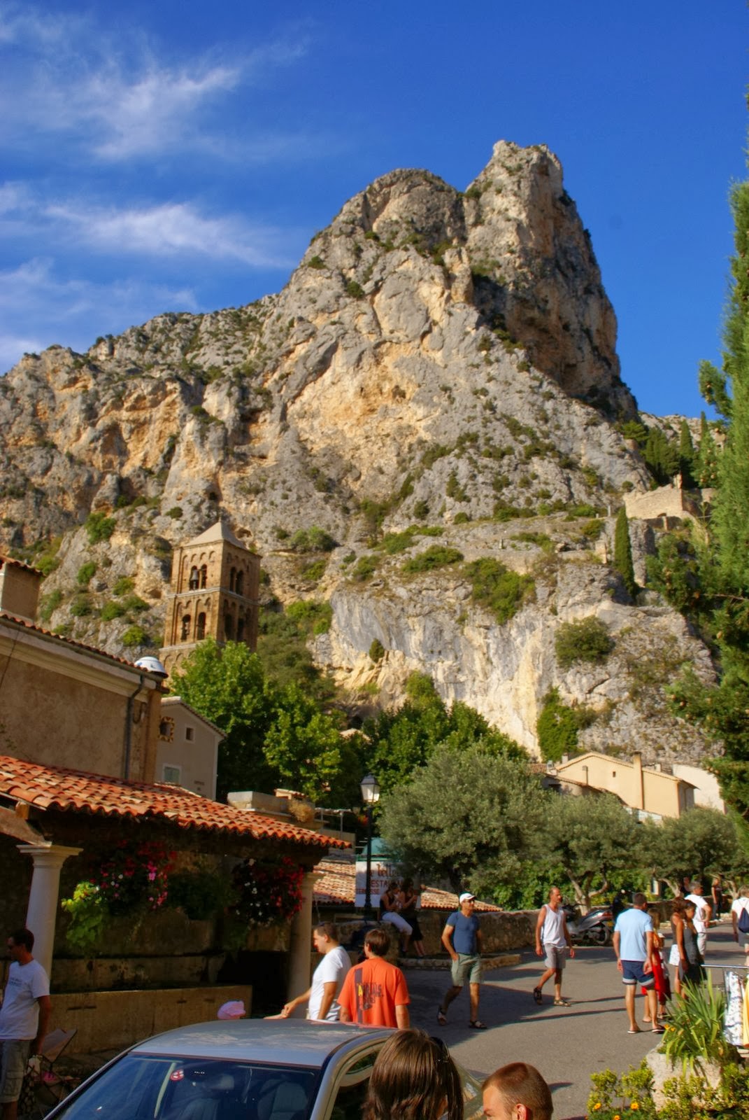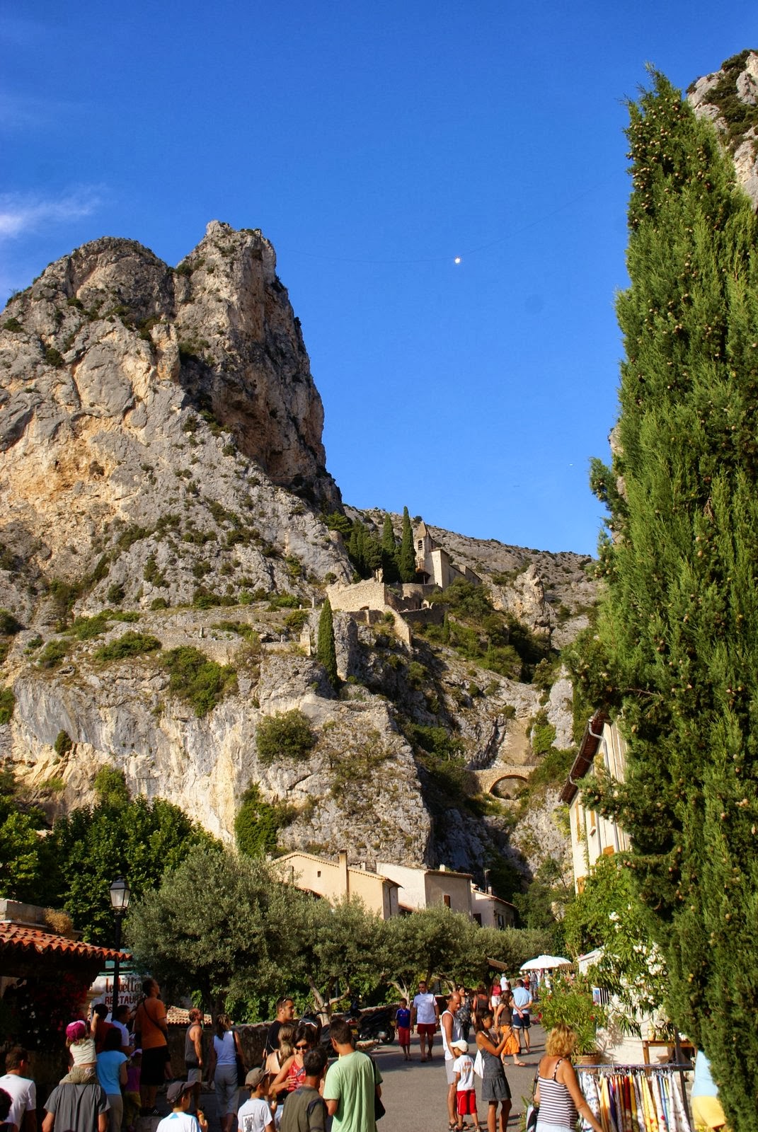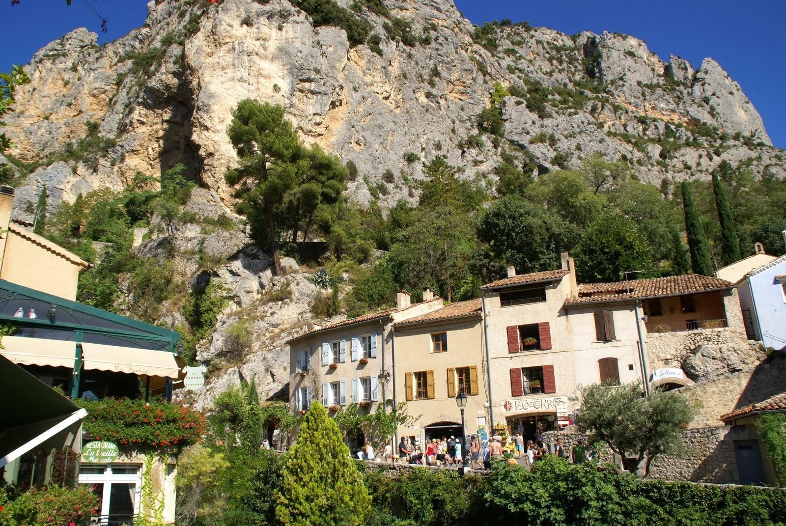 Kontynuując wycieczkę po Grand Canyon du Verdon, pnąc się wysoko drogą nad jeziorem (Lac de Ste-Croix) dojeżdżamy do ślicznego miasteczka Moustiers-Sainte-Marie. Wydaje się ono wyrastać wprost ze skały. Jest tu bardzo zielono, wszędzie jest pełno kwiatów. Miejscowość słynie z wyrobów ceramicznych, których najpiękniejsze eksponaty mozna oglądać w Musee de la Faience.
