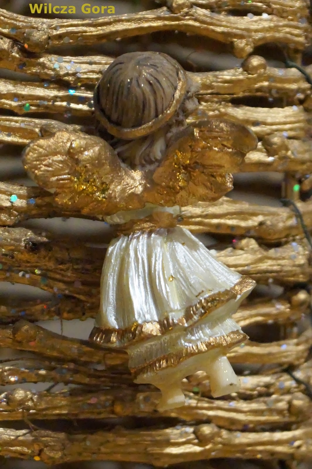 Osoby, które zaglądały na nasze lodowisko pewnie spostrzegły, że na jego tyłach znajdują się dwie złote choiny. Pamiętacie ? Na poniższym zdjęciu jedna z nich odbija się w tafli lodu: