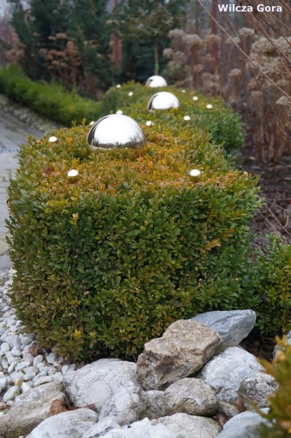 Nasz mały żywopłot z bukszpanu ustroił się w kule. Kilka większych i sporo mniejszych. Elegancko wygląda prawda ?