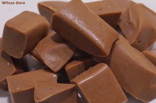 W rondelku podgrzewamy mleko z cukrem. Kiedy się rozpuści, kolejno dodajemy masło, kakao. Ciągle mieszając, doprowadzamy do całkowitego rozpuszczenia składników. Dodajemy mleko w proszku i cierpliwie ucieramy. Mleko musi być pełnotłuste, spożywcze – około 26% tłuszczu.