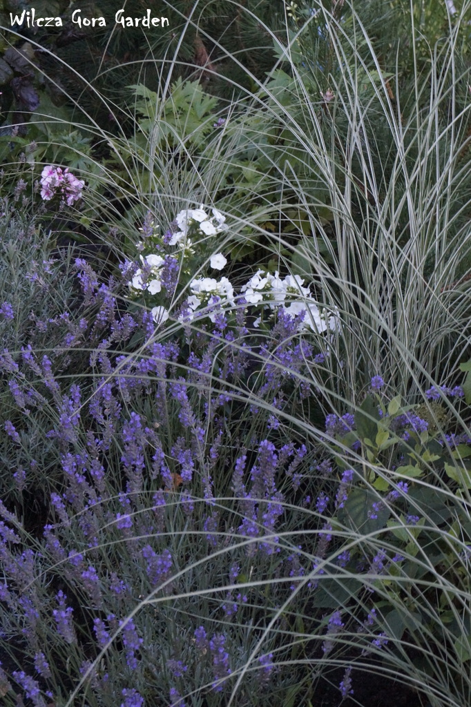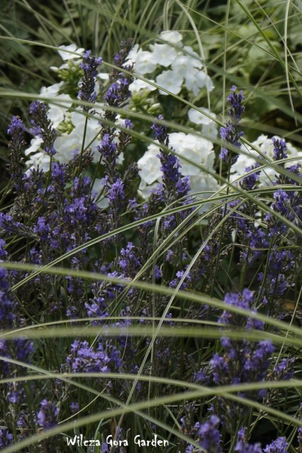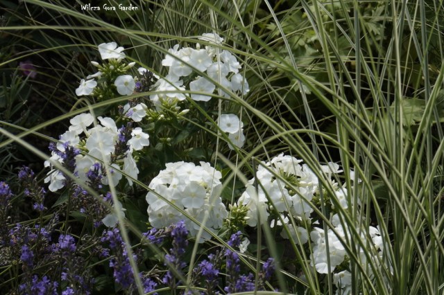 To połączenie kolorów w ogrodzie bardzo mi odpowiada. Bardzo spokojne, eleganckie i stonowane. Często stosuję je na rabatach i powielam przy wykorzystaniu różnych roślin. Dziś pokażę, jak pięknie komponuje się lawenda z białymi floksami wiechowatymi. Lekkości i zwiewności nadają tej kompozycji miskanty. Polecam to zestawienie na słoneczne i suche rabaty.