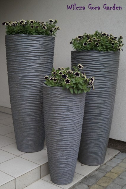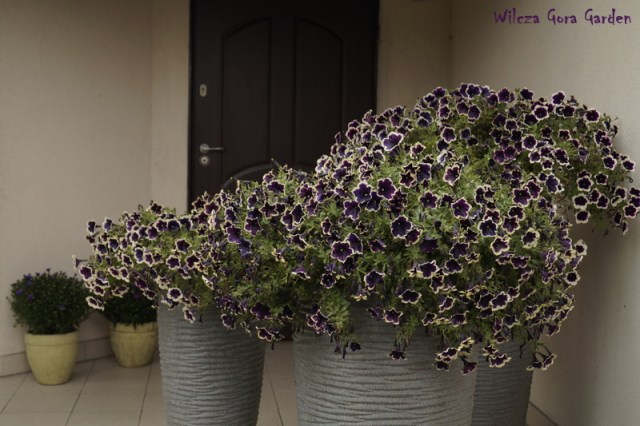 W połowie maja, w nasze najwyższe donice przed domem, wsadziłam nasze ukochane petunie: