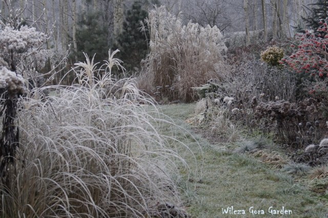 Wyszłam rano na krótki spacer głównie po to, żeby utrwalić te piękne widoki. Dziwny mamy ten grudzień. Już nawet nie chodzi mi o śnieg, ale te dziwne, wręcz jesienne temperatury. W słońcu, zdjęcia byłyby bardziej optymistyczne, ale nie mam powodów do ogrodowych narzekań. Nie zawsze przecież świeci słońce. A ogród wyglądał tak pięknie.