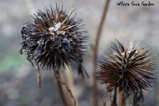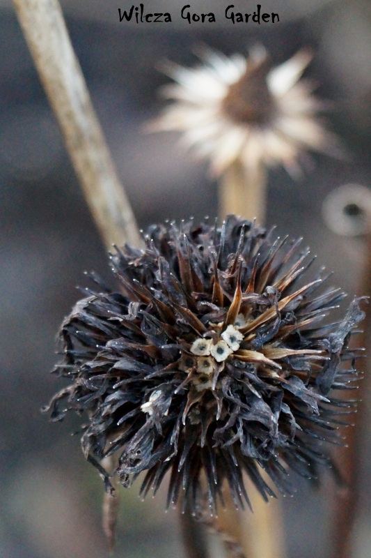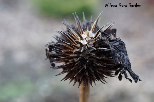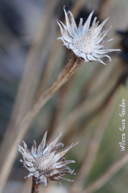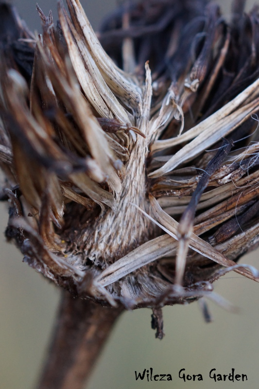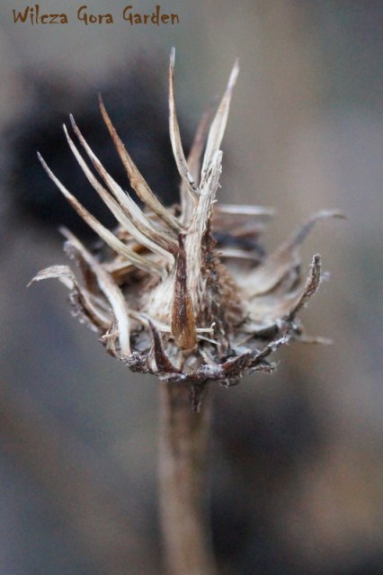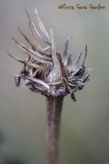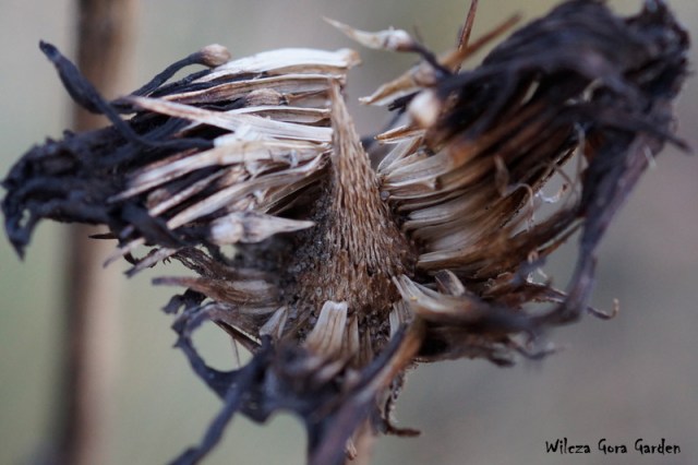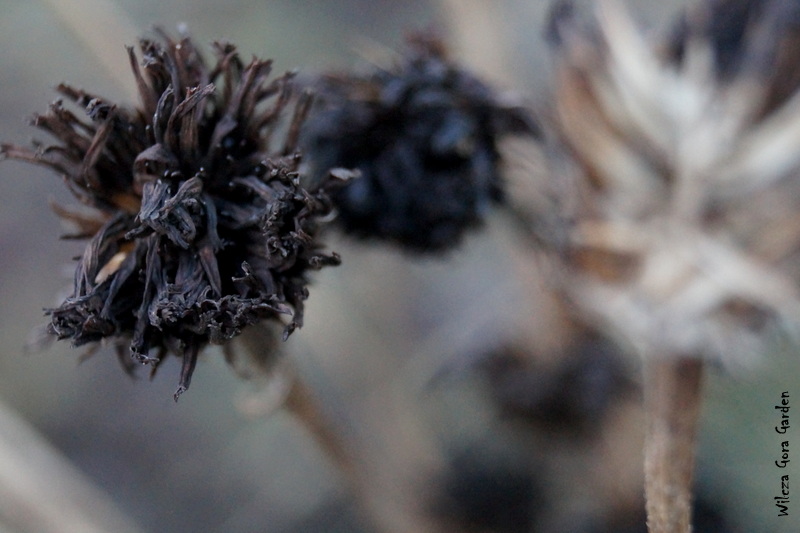 Późną jesienią, uschnięte „główki”, powolnie gubią sczerniałe płatki.