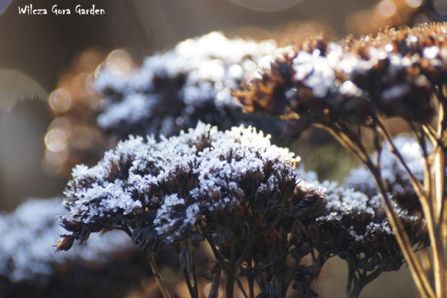 W lutym, bezchmurne noce zwykle oznaczają przymrozki. Małe, ale przymrozki. W ogrodzie nie ma śniegu. Rośliny muszą się chronić same. Mam nadzieję, że nie ucierpią zanadto. Udało mi się uchwycić kilka mroźnych kadrów, które zdają się mnie przekonywać, że takie chwile są również wyjątkowe i piękne. Każdy miesiąc ma swoje inne,