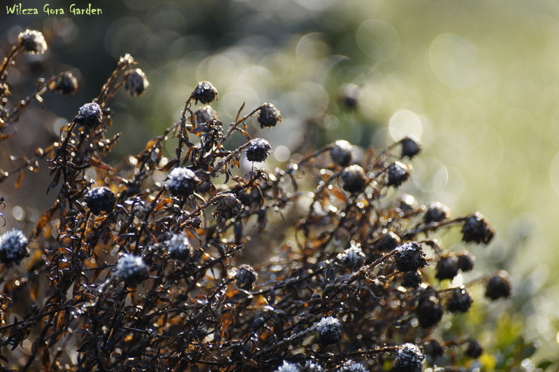 W lutym, bezchmurne noce zwykle oznaczają przymrozki. Małe, ale przymrozki. W ogrodzie nie ma śniegu. Rośliny muszą się chronić same. Mam nadzieję, że nie ucierpią zanadto. Udało mi się uchwycić kilka mroźnych kadrów, które zdają się mnie przekonywać, że takie chwile są również wyjątkowe i piękne. Każdy miesiąc ma swoje inne,