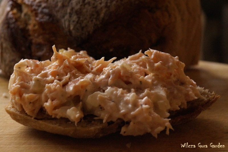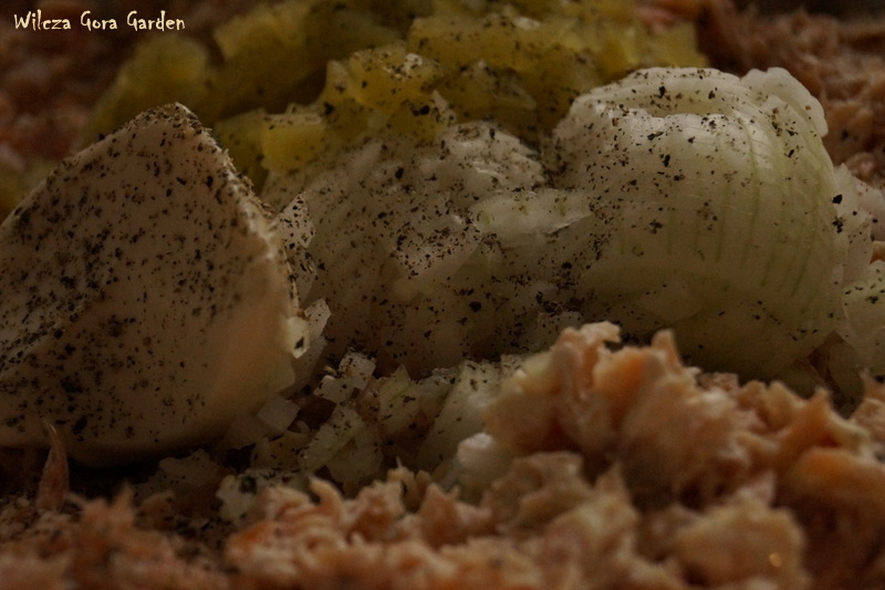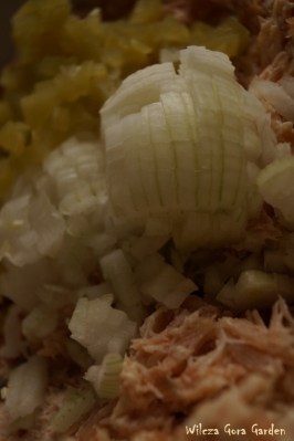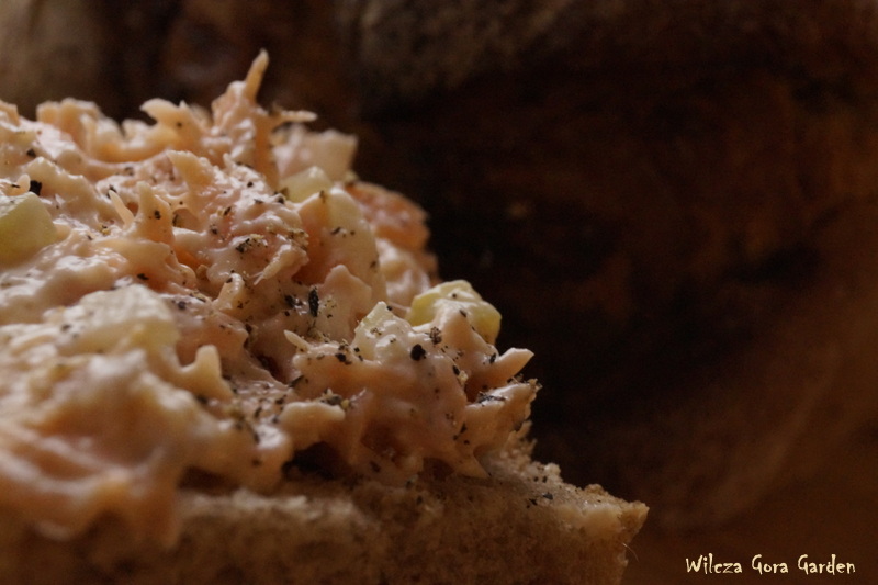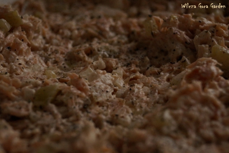 Solę, pieprzę i dodaję majonez. Nie podaję ilości bo każdy musi sam zdecydować, jak jego pasta ma być „kremowa”.
