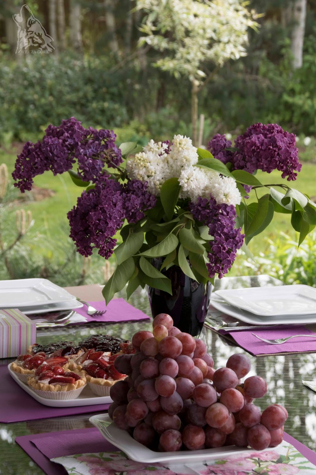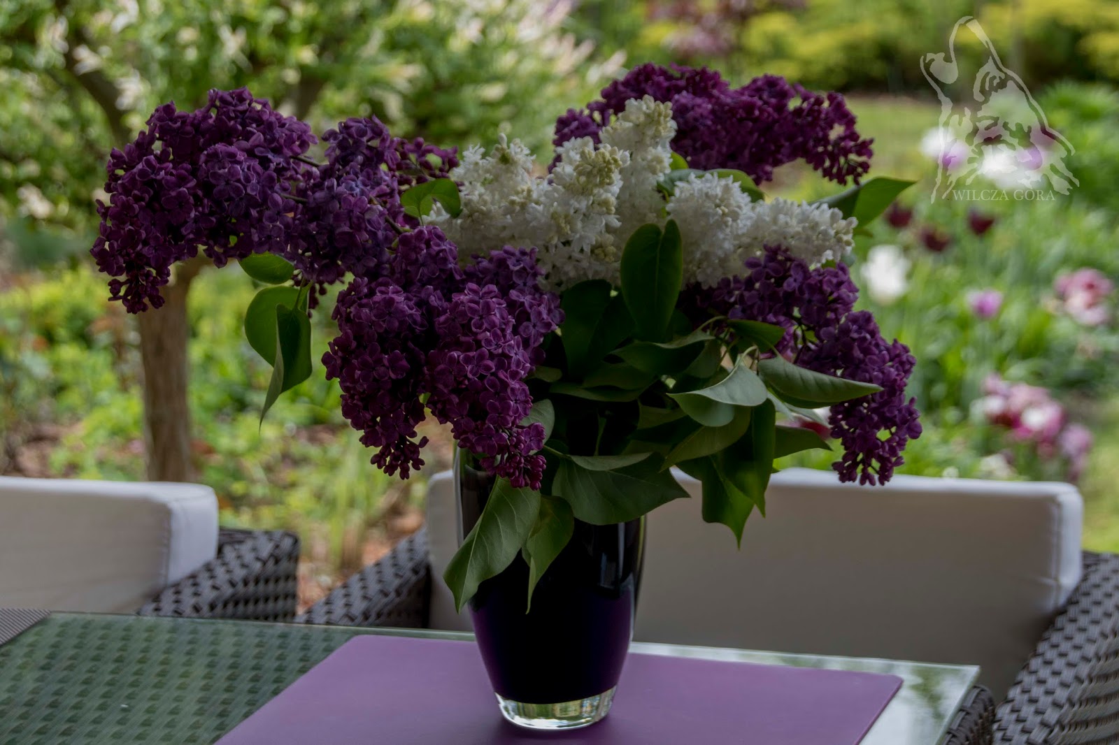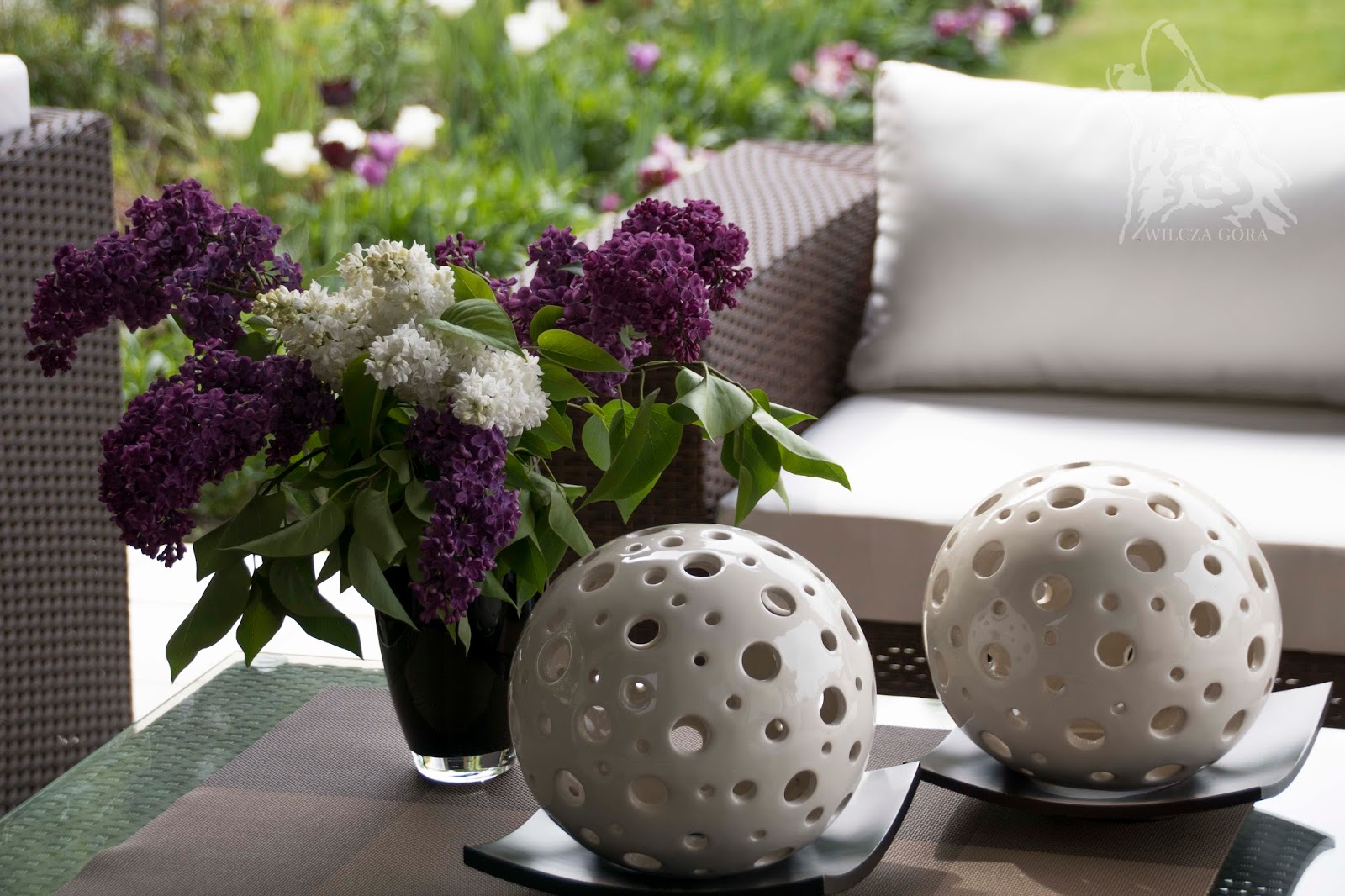 i rozkoszujemy się chwilami odpoczynku. Najchętniej siedząc do nocy. I sobotnia majówka w ogrodzie taka była. Delikatna, spokojna, kwiatowa. Rano ucięłam kilka gałązek bzu, żeby „umaić” nasz stół.