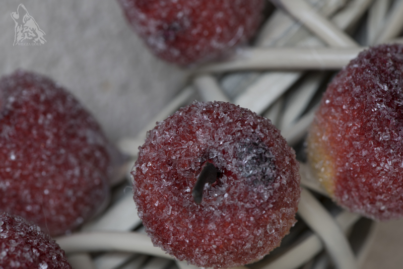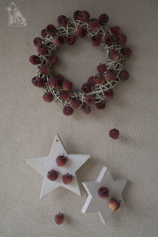 zasypanych gęsto czerwonymi owocami. To one mnie zainspirowały do zrobienia wianka, który pięknie by się z nimi komponował. Myślałam, myślałam i wymyśliłam. W zeszły sezonie wiatr nieźle sobie poczynał z moimi ozdobami z bombek, więc w tym roku postanowiłam nie ryzykować.