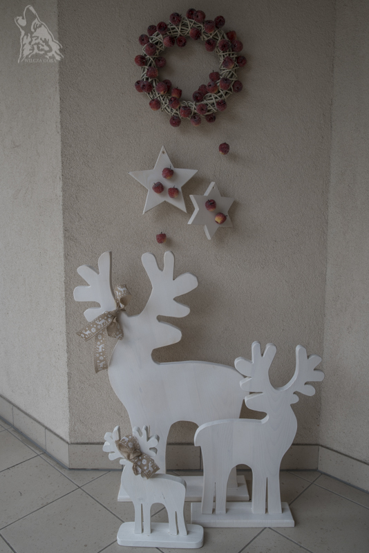 Postawiłam na czerwone jabłuszka w „rajskim ogrodzie Ewy”. Wymyśliłam też, że będą ich pilnowały renifery…