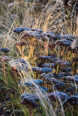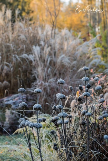 W ponure zimowe dni, suche kwiatostany bylin i traw ozdobnych wyglądają szczególnie pięknie.