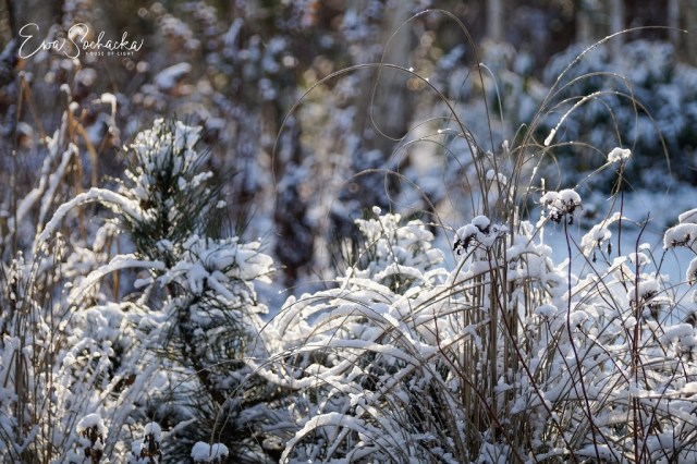Zimą, ciekawie obsadzone rabaty, zmrożone, pokryte szronem lub śnieżną kołderką wspaniale eksponują swoją urodę: