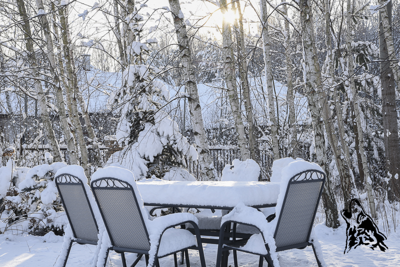 Ogród pokrywa się na długie tygodnie grubą, białą pierzynką: