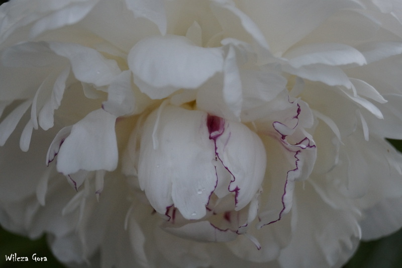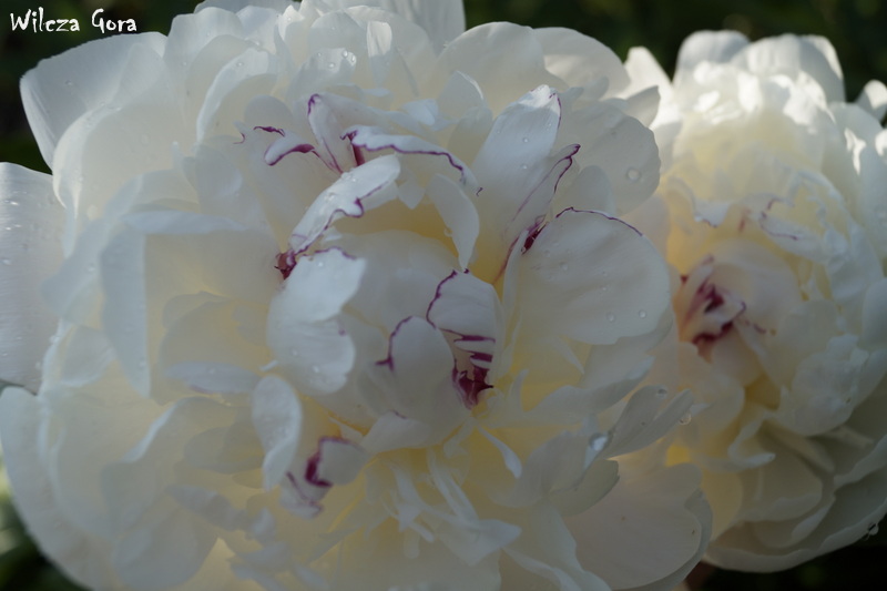 Mamy też piękne, białe piwonie. Na zdjęciu ponizej odmiana „Festiva Maxima”: