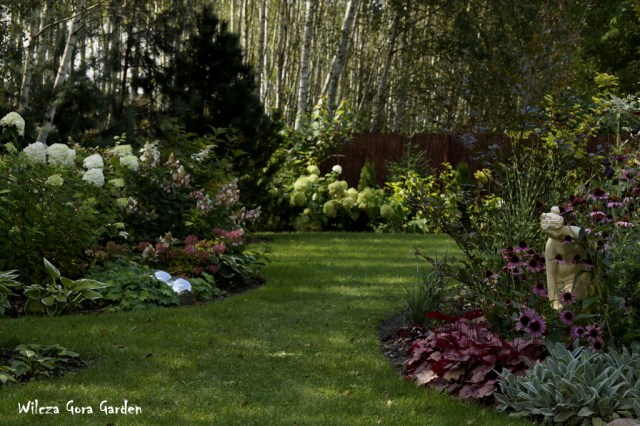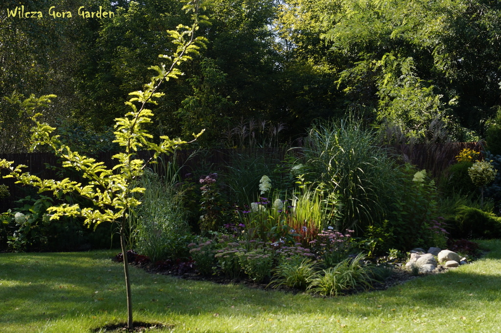 Piękny mamy początek jesieni tego lata. Zimno, szaro, buro i pada. Aura bardzo jesienna, a w połączeniu z naszym widokiem przez okno, bardzo październikowa. Liście opadają z naszych brzóz przy najmniejszym nawet powiewie wiatru. Nie mogę powiedzieć, że to wszystko nastraja mnie optymizmem. Na poprawę samopoczucia, jak tylko przestało padać, pobiegłam na krótką przechadzkę po ogrodzie. Co zastałam ?Soczystą zieleń i odświeżone, zdrowe rośliny. Czyli nie jest źle! Jest nawet dobrze !Pospacerujmy razem: -