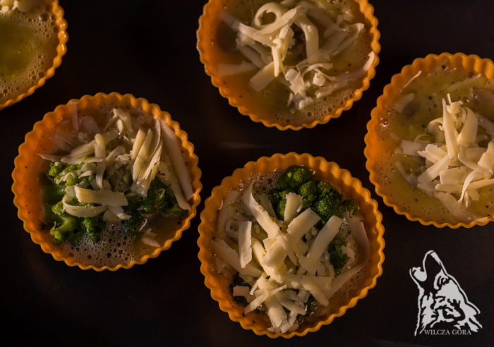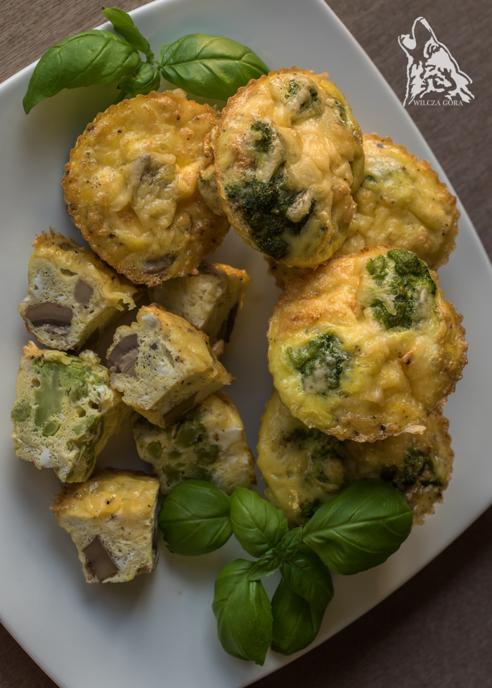 – 6 łyżek utartego żółtego seraŚrodki foremek smarujemy cienko masłem.Jeśli planujecie lekkie frittaty z brokułem lub kalafiorem,podzielcie go na małe różyczki.Blanszujcie w osolonym wrzątku, przez 3-5 minut.Po odcedzeniu, przelejcie go strumieniem zimnej wody.A w temacie odcedzania …… macie już znakomity, silikonowy durszlak FISKARS ?Po złożeniu, ma tylko 3 cm wysokości !!!Mieści się w szufladzie z drobnymi akcesoriami kuchennymi.Nie potrzebna jest dodatkowa szafka na garnki tylko po to,aby schować durszlak …Całe jaja zmiksujcie przez moment w misce. Należy je osolić i dodać pieprz do smaku.Żółty ser utrzyjcie na tarce. Do foremek włóżcie różyczki brokułu,wlejcie jaja i obsypcie wierzch serem.Jeśli planujecie frittaty z pieczarkami i cebulką, pokrójcie je drobno i podsmażcie na patelni.Ja wkładam składniki do foremek dwóch etapach. Łyżeczką nakładam pieczarki wymieszane z cebulką,kolejno, wlewam na nie jajka do 1/3 wysokości foremki. Posypuję serem i dokładam kolejną warstwę pieczarekwymieszanych z cebulką, znów wlewam jaja i wierzch posypuję serem.Nie wypełniajcie foremek do końca, bo frittaty lekko podrosną. Ustawiamy je w małych odstępach na blasze.Pieczemy w piekarniku, w 190 stopniach, przez 18-20 min. W trakcie pieczenia, często wyrastają wysoko ponad foremki,ale w trakcie studzenia opadną i będą wyglądały doskonale !!!Pieczcie, eksperymentujcie z dodatkami i cieszcie się prostymi, lecz doskonałymiMINI-FRITTATAMI. My najbardziej przepadamy za pieczarkowymi i brokułowymi.Może i Wy odkryjecie je jako swoje ulubione ? Są lekkie i bardzo aromatyczne.SMACZNEGO !!!
