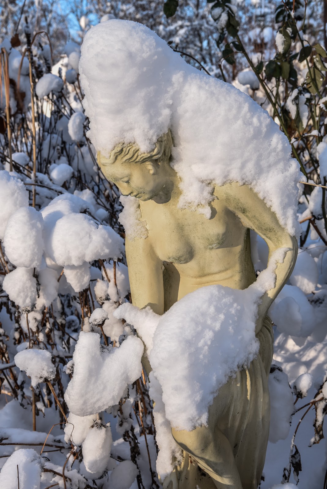 Bezlistne gałązki i uschnięte byliny przywdziewają śnieżnobiałe czapeczki.Ogromne, białe czapy wyglądają olśniewająco. Przepadam za zimowymi spacerami.W słoneczne, rześkie dni, kiedy duży mróz nie dokucza, chwytam za aparat i w drogę.Do ogrodu, do lasu, na pola … Co udało się dla Was sfotografować ?Oto to:A w ogrodzie, taką mamy cudną aurę …Taką zimę kocham i za taką tęsknię każdego roku.Szkoda tylko, że to zwykle tylko kilka dni albo kilka godzin…tej wspaniałej, zimowej krainy czarów. -