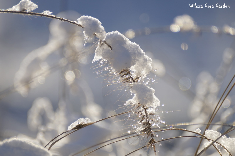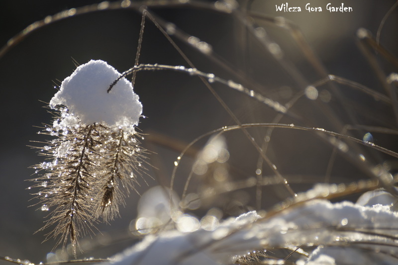 Rozplenica japońska (przez niektórych nazywana piórkówką) Pennisetum alopecuroides ‚Hameln’I znów pochylę się nad jej „jestestwem”. I znów naskrobię parę słów w zachwycie. W kończącym się sezonie ogrodniczym 2016 udało mi się uchwycić w kadrze jej portrety w bardzo różnych miesiącach.Zachwycała mnie latem. Zielonymi źdźbłami, z których dumnie wychylały się różowiejące kłosy.Zachwycała wczesną jesienią, kiedy kłosy lekko się rozjaśniły, i delikatnie, jak piórka powiewały na wietrze.Zachwycała krótko przed nadejściem zimy. Zielone źdźbła wybarwiły się na piękne cytrynowo-pomarańczowo, lekko rdzawe tony, nadając jej lekkiego, jesiennego powabu.A kiedy spadł pierwszy śnieg ?Kłosy uroczo dźwigały śnieżne, białe kołderki.Teraz zachwyca spod śniegu,kiedy w słoneczne dni śnieżynki skrzą się przepięknie w blasku słońca.Uwielbiam takie całoroczne piękności, które nadają ogrodowi urody przez cały sezon.Lubię je podglądać o każdej porze roku. Zmieniająca się aura, w ich przypadku nie działa na niekorzyść.Pojawiają się nowe kolory, a w końcówce roku zachwyca zimowa odsłona.Czego chcieć więcej ? Ja chcieć więcej rozplenic w kolejnym sezonie !!!Macham do Was z całych sił. -